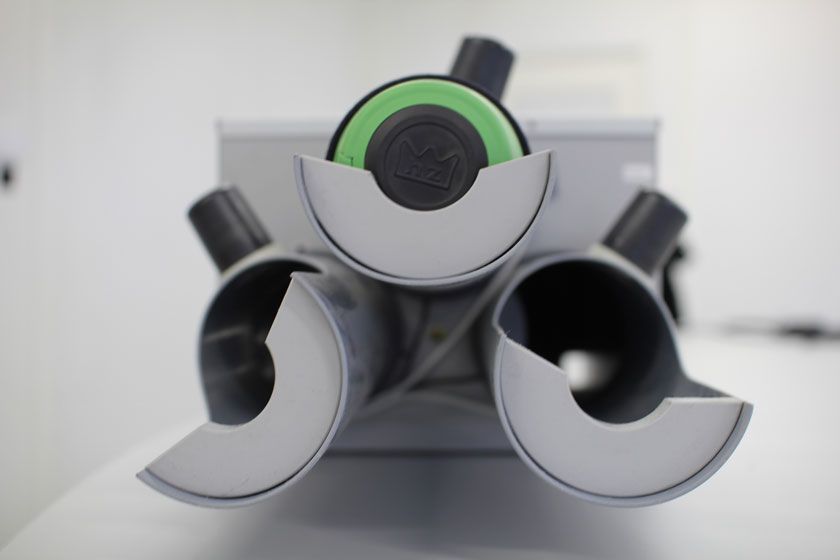 Via so-called Diverter the tube is divided into several strands, which lead to the individual stations.